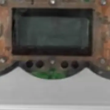 Trapezoid shaped topside with 6 buttons and a screen in the center.